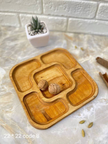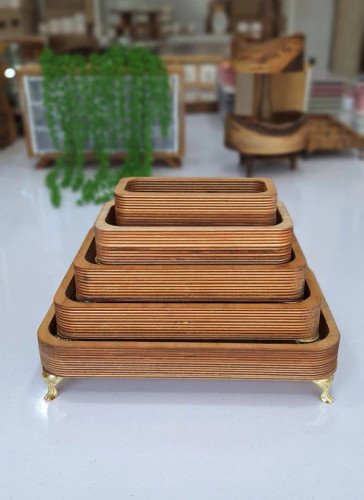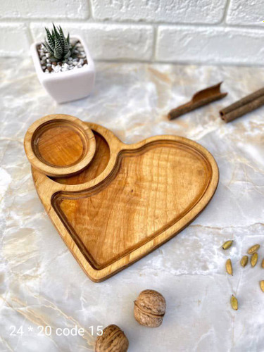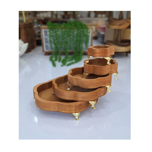 سینی پنچ تکه چوبی پذیرایی پایه دار سینی سرو پنج تکه چوبی مدل قلب