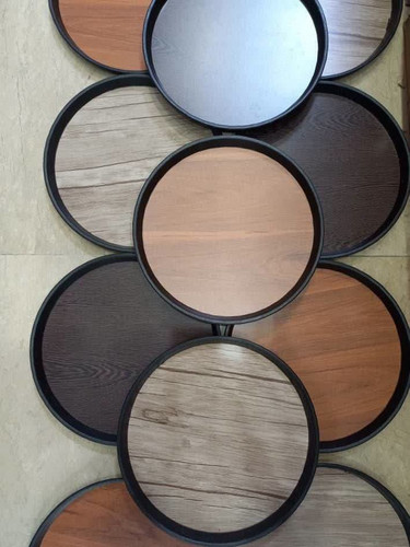 سینی چوبی 5تکه پذیرایی پایه دار قطر 3 سانت سینی مزه خوری چوبی 5تکه پایه طلایی ست پذیرایی چوبی گردناموجود