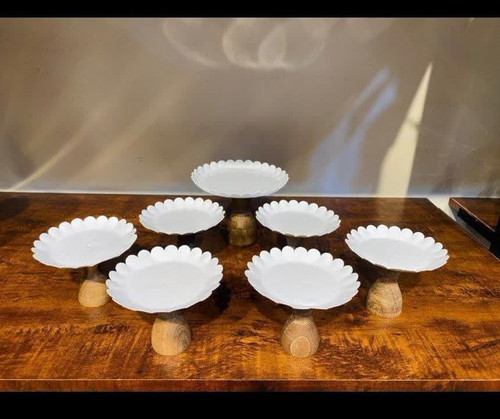 کاسه چوبی 5تیکه ست چوبی پذیرایی 5تیکه گرد مربع بشقاب 5تیکه پذیرایی چوبی پایه دارناموجود