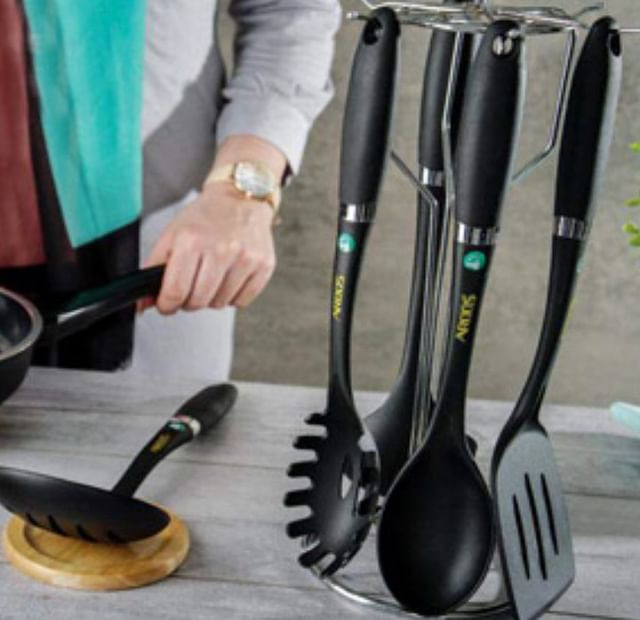 ست کفگیر ملاقه عروس تعداد : 7 عدد سرویس 7 پارچه شامل: 1 عدد کفگیر به طول 33.5 سانتیمتر 1 عدد کفگیر به طول 34.3 سانتیمتر 1 عدد ملاقه به طول 35.5 سانتیمتر 1 عدد قاشق به طول 33.5 سانتیمتر 1 عدد قاشق اسپاگتی به طول 33.5 سانتی متر 1 عدد ملاقه به طول 33 سانتیمتر ابعاد استند: طول 10 سانتی متر ارتفاع 33.5 سانتیمتر جنس بدنه : الترامید (قابلیت تحمل دما تا 200 درجه سانتی گراد) رنگ : با افتخار ساخت ایران