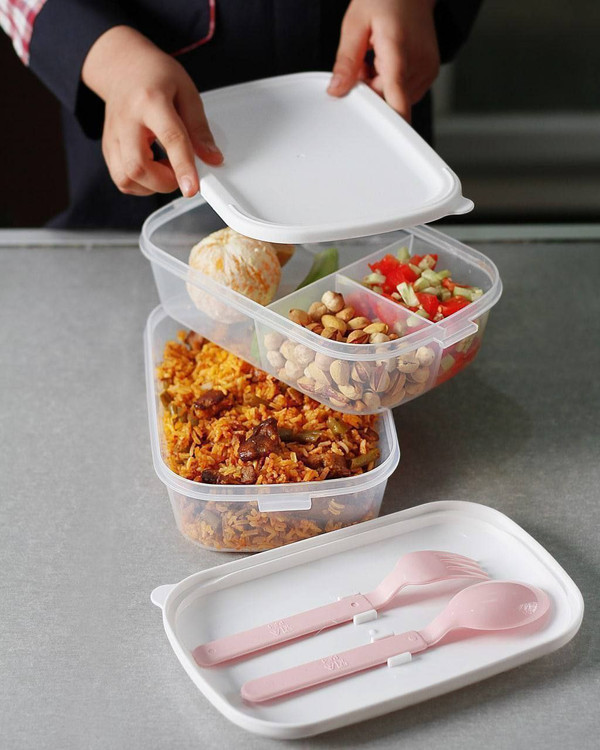 لانچ باکس دو طبقه تاپکو تولید شده با مواد اولیه گرید غذایی. دارای سه بخش مجزا برای تفکیک مواد غذایی. همراه با قاشق و چنگال پلاستیکی. قابل استفاده در ماکروویو . قابل شستشو در ماشین ظرفشویی. دارای دستگیره برای حمل و نقل آسان