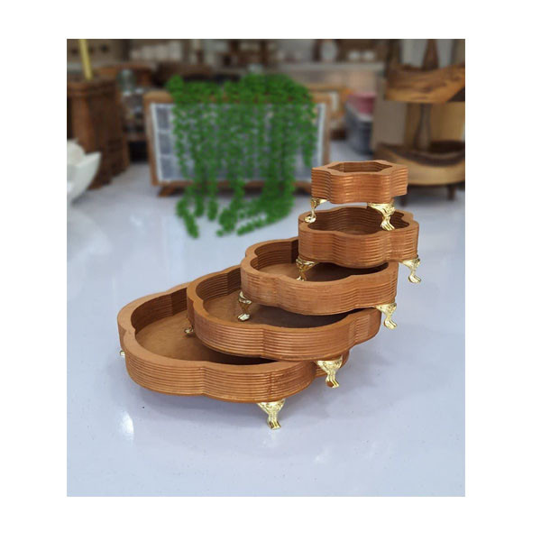 سینی پذیرایی پنج تکه چوبی طرح گل