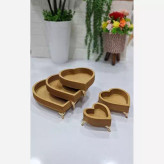 سینی پنچ تکه چوبی پذیرایی پایه دار سینی سرو پنج تکه چوبی مدل قلب