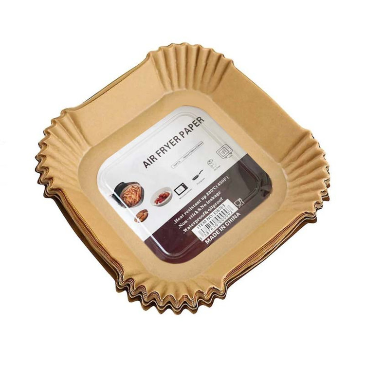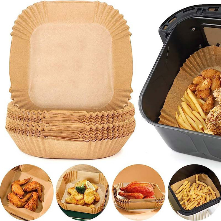کاغذ سرخکن مربع نسوز در اندازه طول و عرض 16 سانتی متر مناسب سرخ کن های بدون روغن برای پخت یا گرم کردن غذا قابل استفاده در ایرفرایر(هواپز) مایکروفر و غیره در بسته 50 عددی محصولی برای آشپزی بهتر و سریعتر بدون کثیف کاری و پاشیدن روغن به اطراف است.