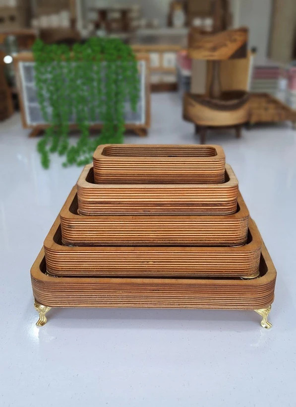 سینی 5تکه مستطیل سینی پذیرایی 5تکه چوبی سینی سرو مزه خوری مستطیل پایه دار