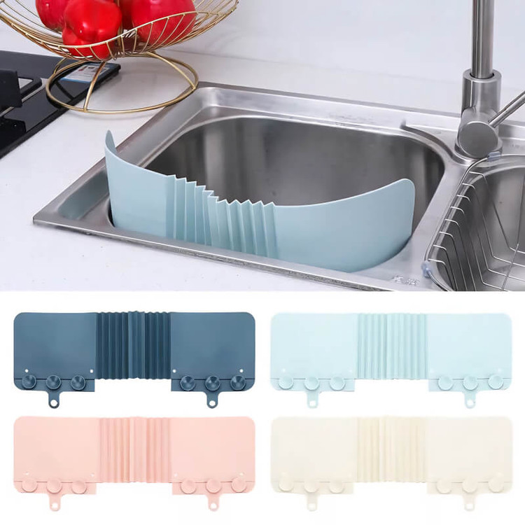 بگیر جلو سینک آکاردئونی برای تمام مدل سینک ها قابلیت نصب دارد و با کمک چسبک های مکنده در داخل تشت سینک نصب شده تا از پاشش آب به اطراف، دیوار پشت و یا لباس ها جلوگیری کند.