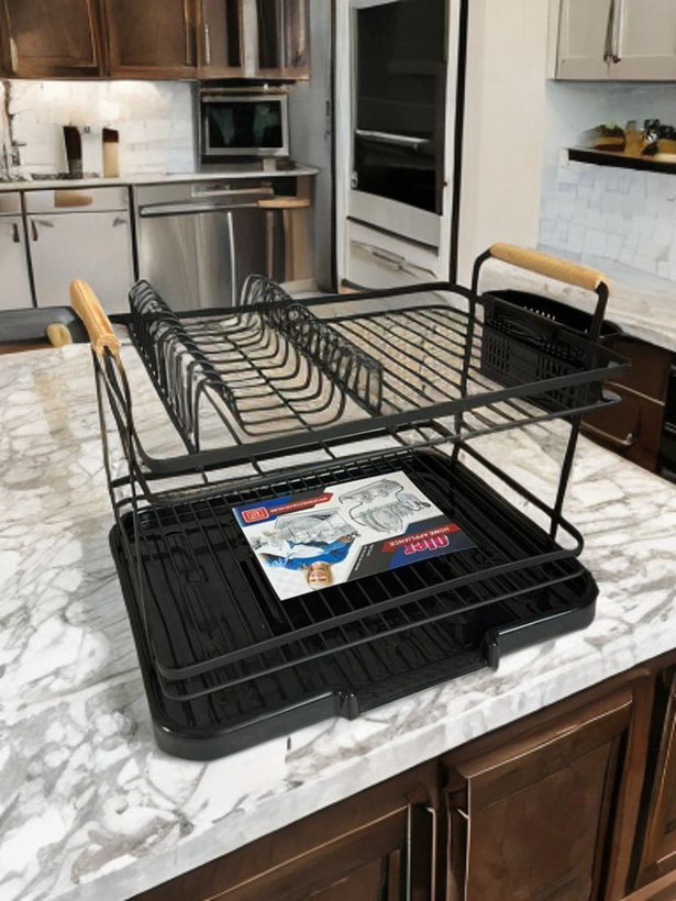 آبچکان کنار سینک مشکی دسته چوبی دو طبقه