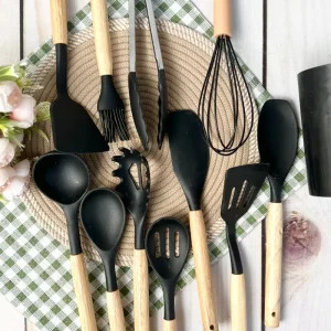 ست کفگیر سیلیکونی سطلی 12 پارچه مشکی